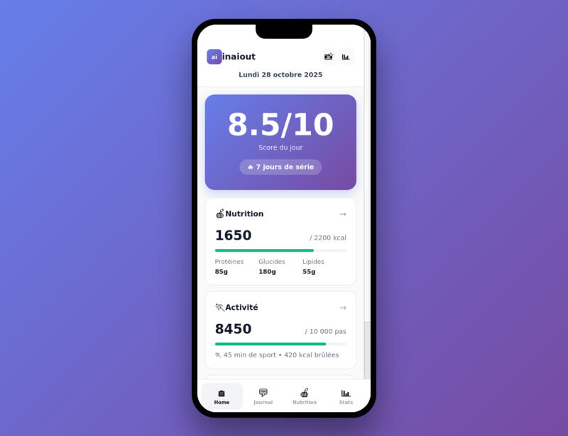 Ton assistant bien-être qui comprend tes repas, tes activités et tes habitudes.